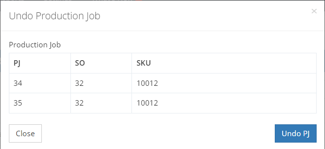 - In the pop-up dialog box, click on the ‘Undo PJ’ button to reverse the production order.