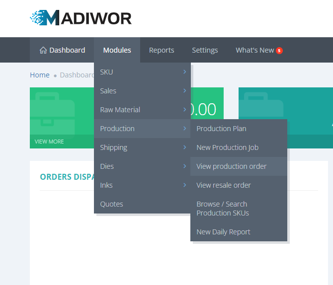 - Navigate to Modules > Production > View production order