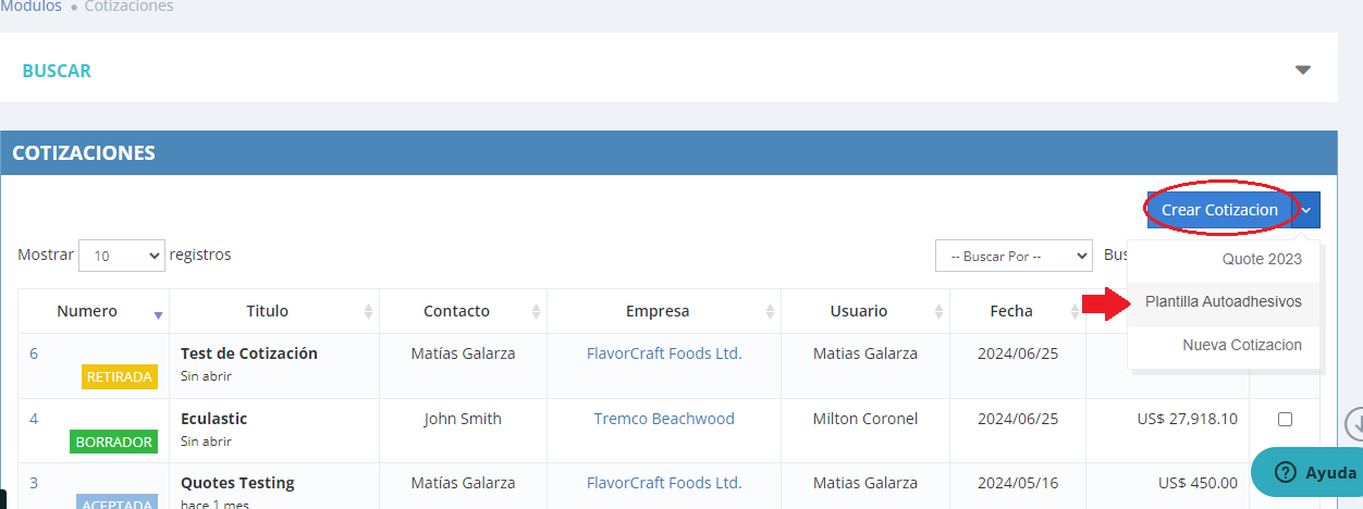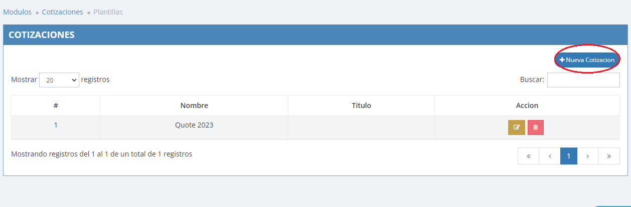 - Ir a: Modulos > Cotizaciones