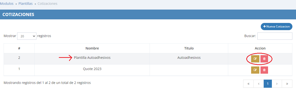 - Ir a: Configuracion > Cotizaciones > Plantillas