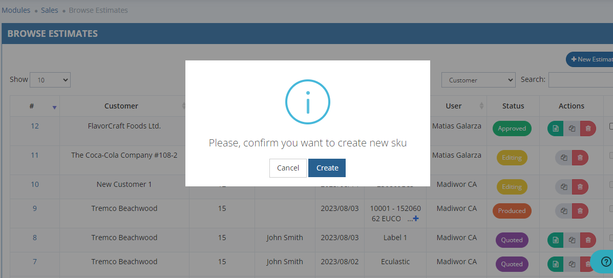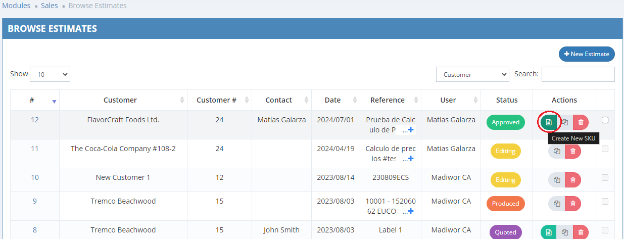 - Go to Modules > Sale > Browse Estimates