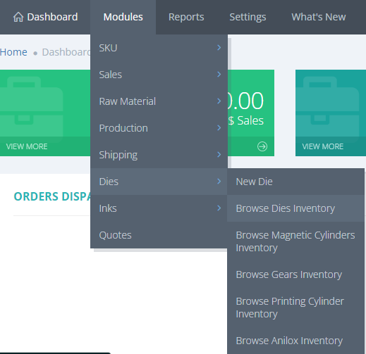 Go to Modules > Dies > Browse Dies Inventory