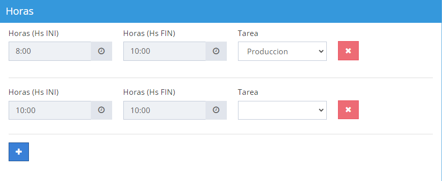 Al presionar el botón con el símbolo “+” se pueden ingresar más horas.