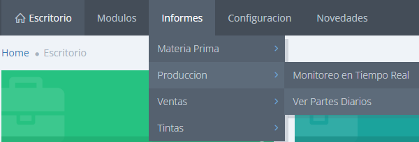 Para ver partes diarios anteriores debemos ir a Reportes > Producción > Ver Partes Diarios.